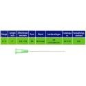 Overzicht van diameter, kleur van de conus en lengtes van gangbare naalden: