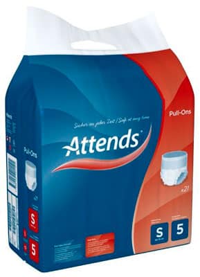 Attends Pull-Ons 5 zijn superabsorberende, elastische broekjes die gemakkelijk aan- en uitgetrokken kunnen worden.